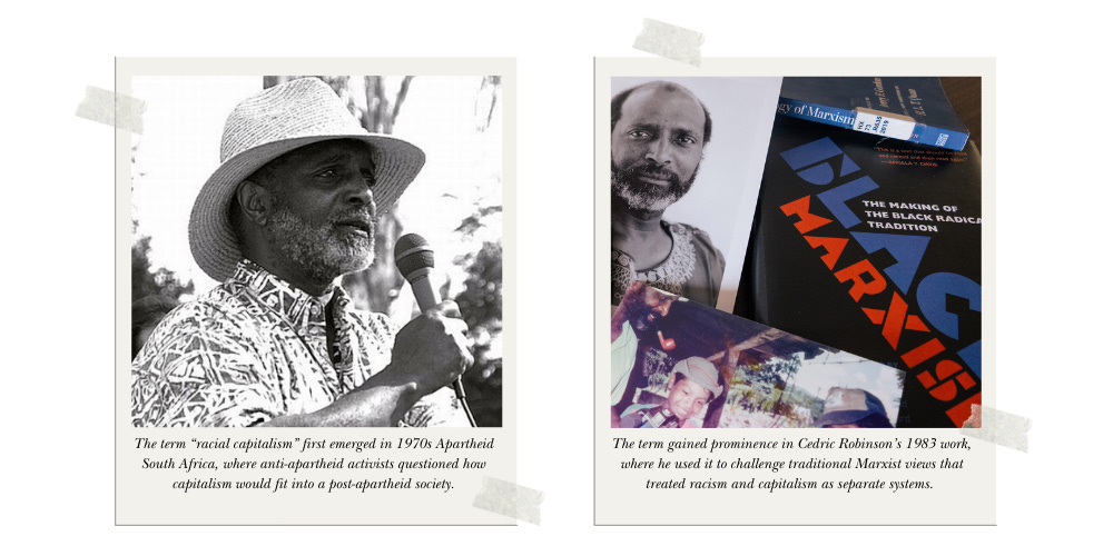 To fully grasp this concept, we must place it in historical context. The term “racial capitalism” first emerged in 1970s Apartheid South Africa, where anti-apartheid activists questioned how capitalism would fit into a post-apartheid society.
