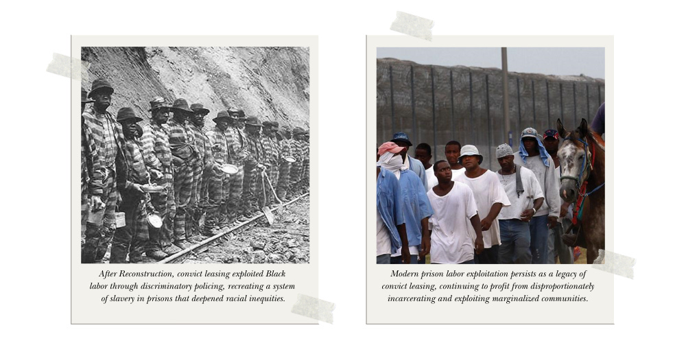 This modern system of labor extraction mirrors the convict leasing system after the Civil War, which re-enslaved emancipated Black Americans for profit. The Thirteenth Amendment’s exception clause, which allows slavery and involuntary servitude as punishment for crime, legitimizes this exploitation.
